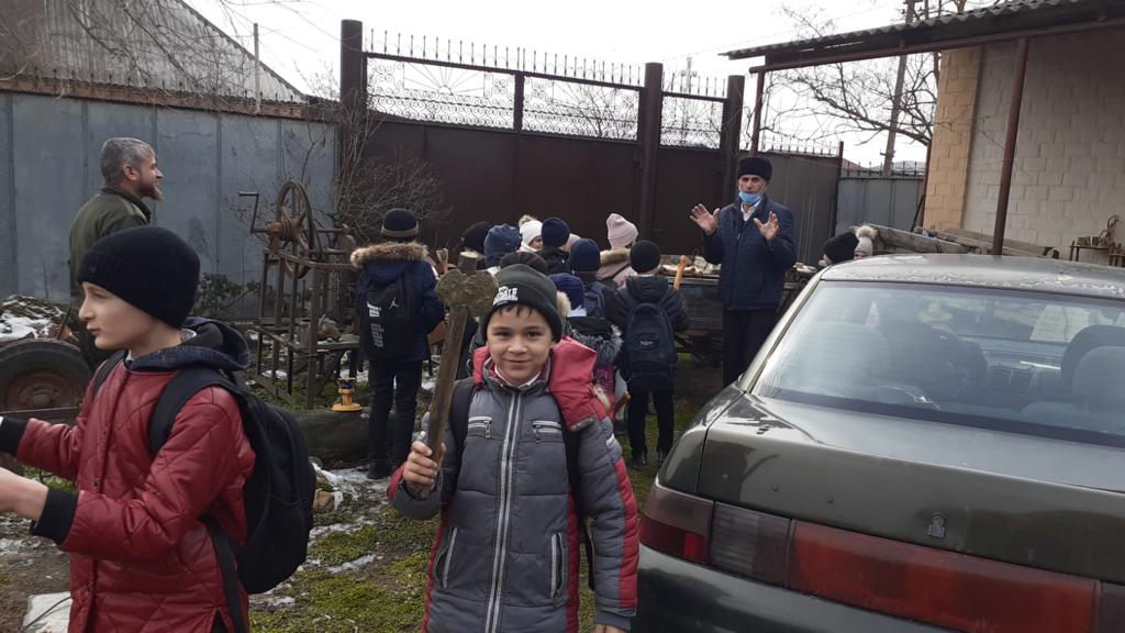 24.11.2022г. , Учитель начальных классов Эскирханова Р. М. с учащимися 4 «В» класса в количестве 24 человек МБОУ «Калиновская НОШ» проведена экскурсия в музей в ст. Калиновская на дому у Эскерханова А-КЦель :Патриотическое воспитание граждан своего Отечества;Приобщить школьников к истории и культуре родного края;Расширение сферы образования через приобщение к музейной педагогике; вовлечение детей в творческую деятельность историко-познавательного направления;Познакомить школьников с родным краем: с историко-культурными, национальными, географическими, сформировать у них такие черты характера, которые помогут им стать патриотом и гражданином своей Родины;Воспитать патриотизм и гражданскую ответственность за свою страну.