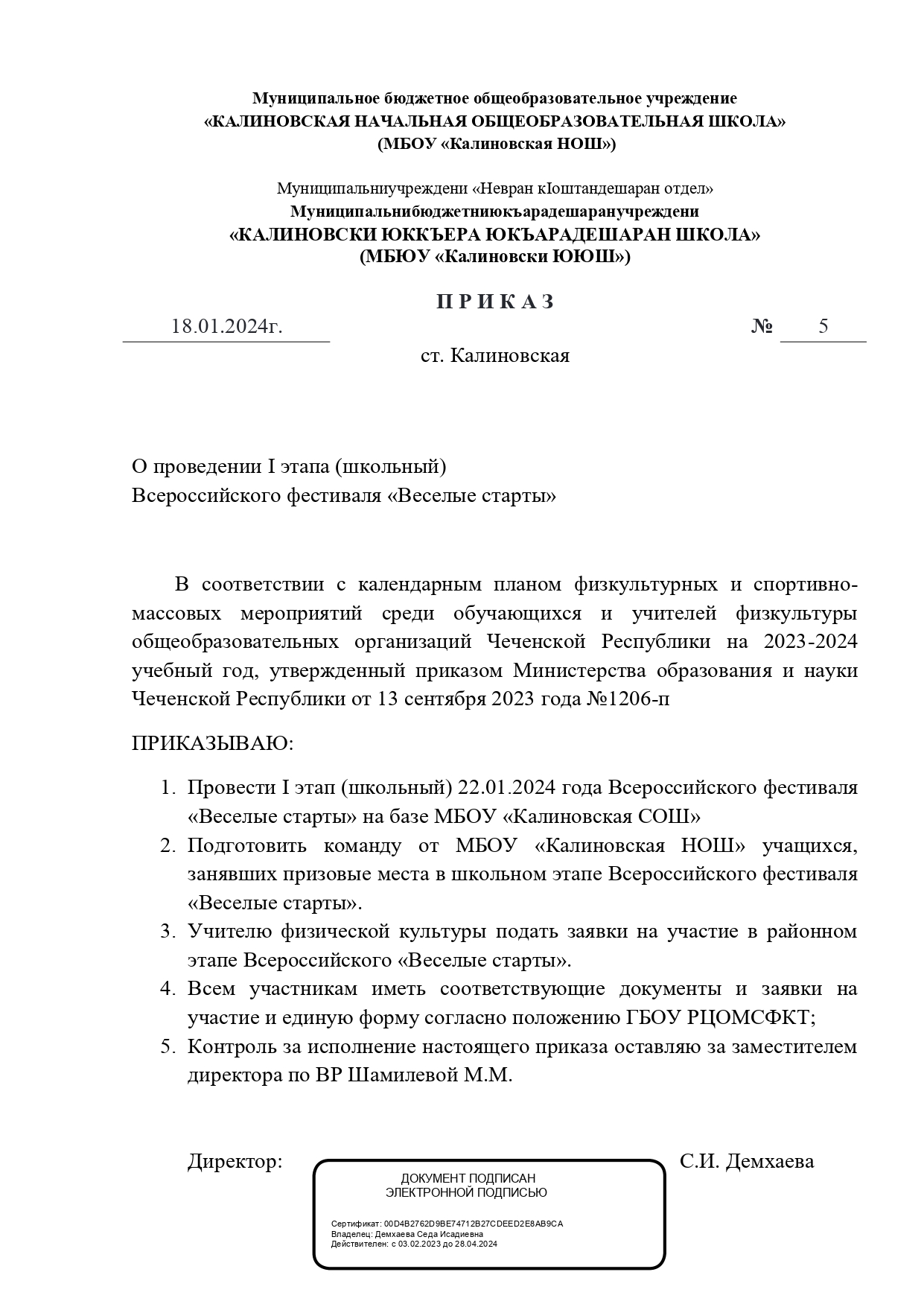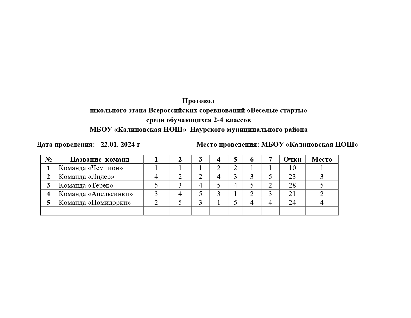 22.01.2024 г. в МБОУ "КалиновкаяНОШ" был проведён школьный этап спортивных соревнований "Весёлые старты" для учащихся начальных классов, где приняли участие 2-4 классы.