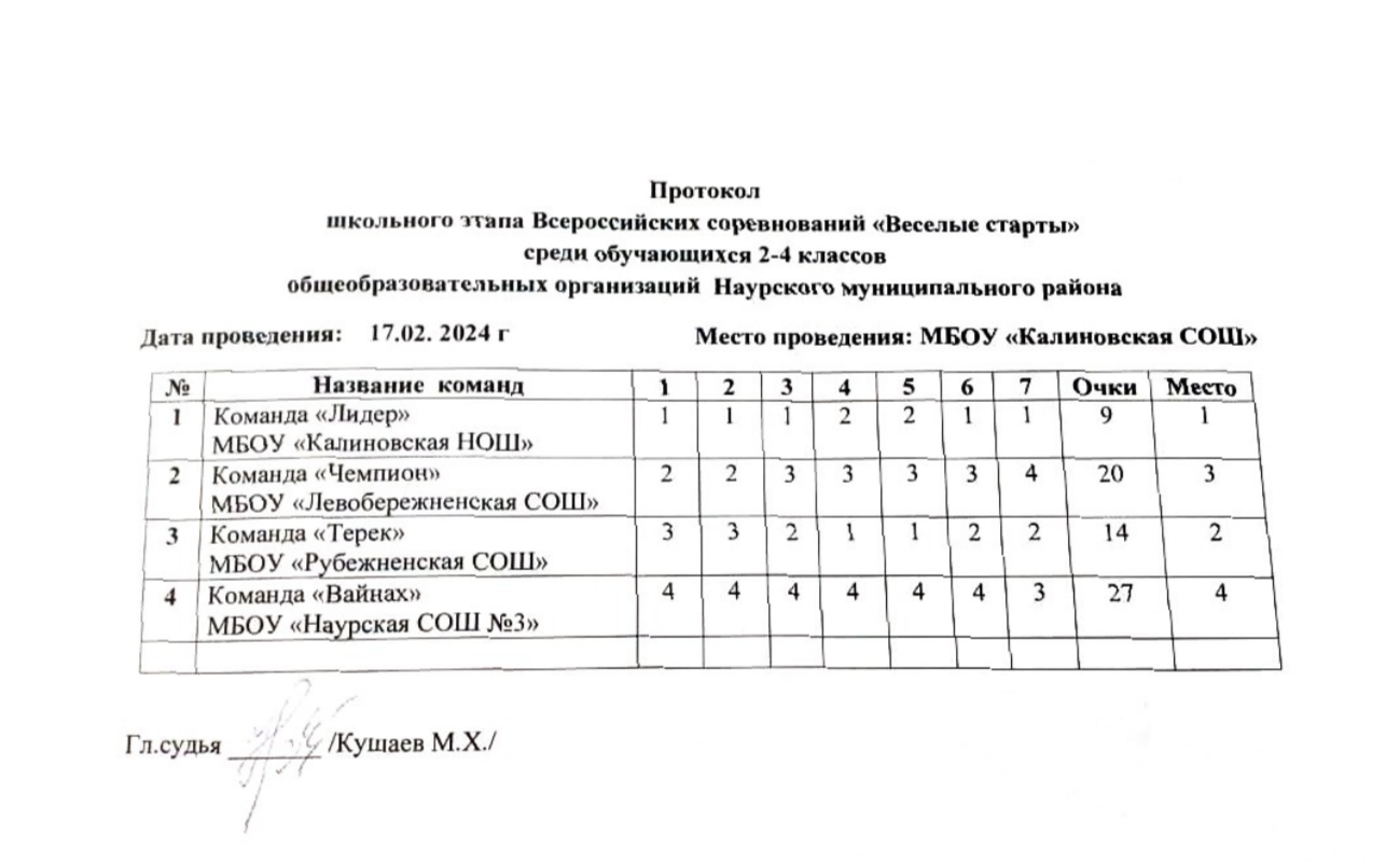 17.02.2024 года в МБОУ "Калиновская СОШ" прошел Муниципальный этап Всероссийских соревнований "Веселые старты". Команда из Калиновской начальной общеобразовательной школы заняла 1 место в муниципальном этапе.