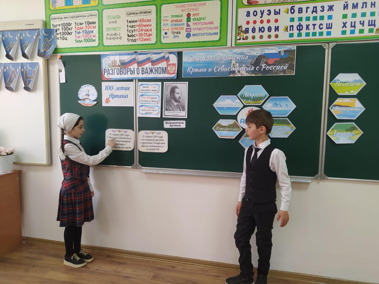 17.03.202517 марта 2025 г в МБОУ « Калиновская НОШ» учебная неделя с обучающимся 1-4 классов началась с занятие РОВ на тему: «День воссоединения Крыма и Севастополя с Россией 100-летие Артека».Целью является воспитание ценностного отношения к истории своей страны, понимания исторического значения воссоединения Крыма и Севастополя с Россией; формирование у обучающихся представления о Международном детском центре «Артек» как национальном достоянии; развитие интереса к истории Артека и понимания ценности его традиций.