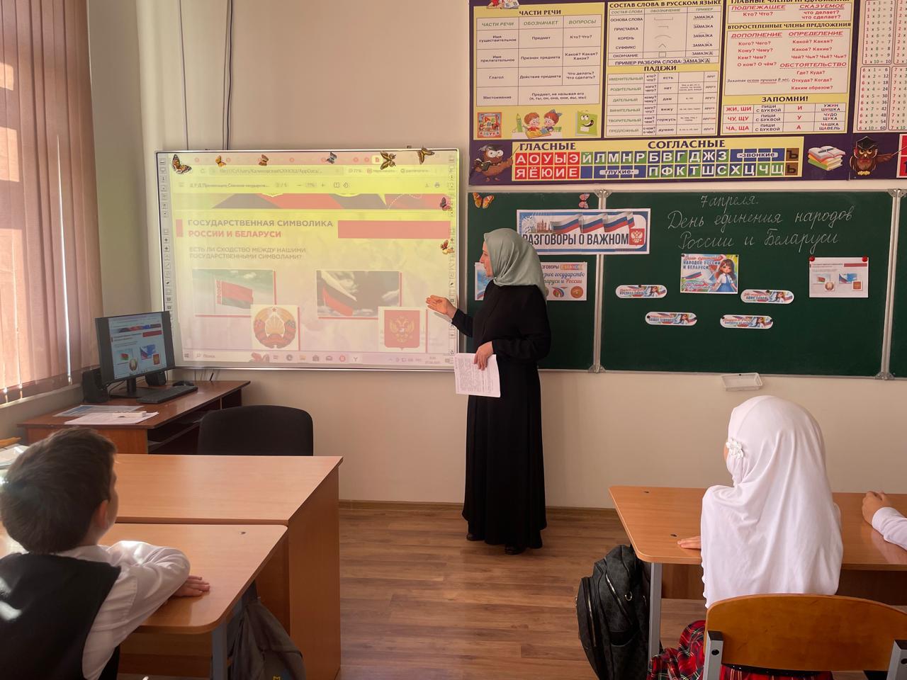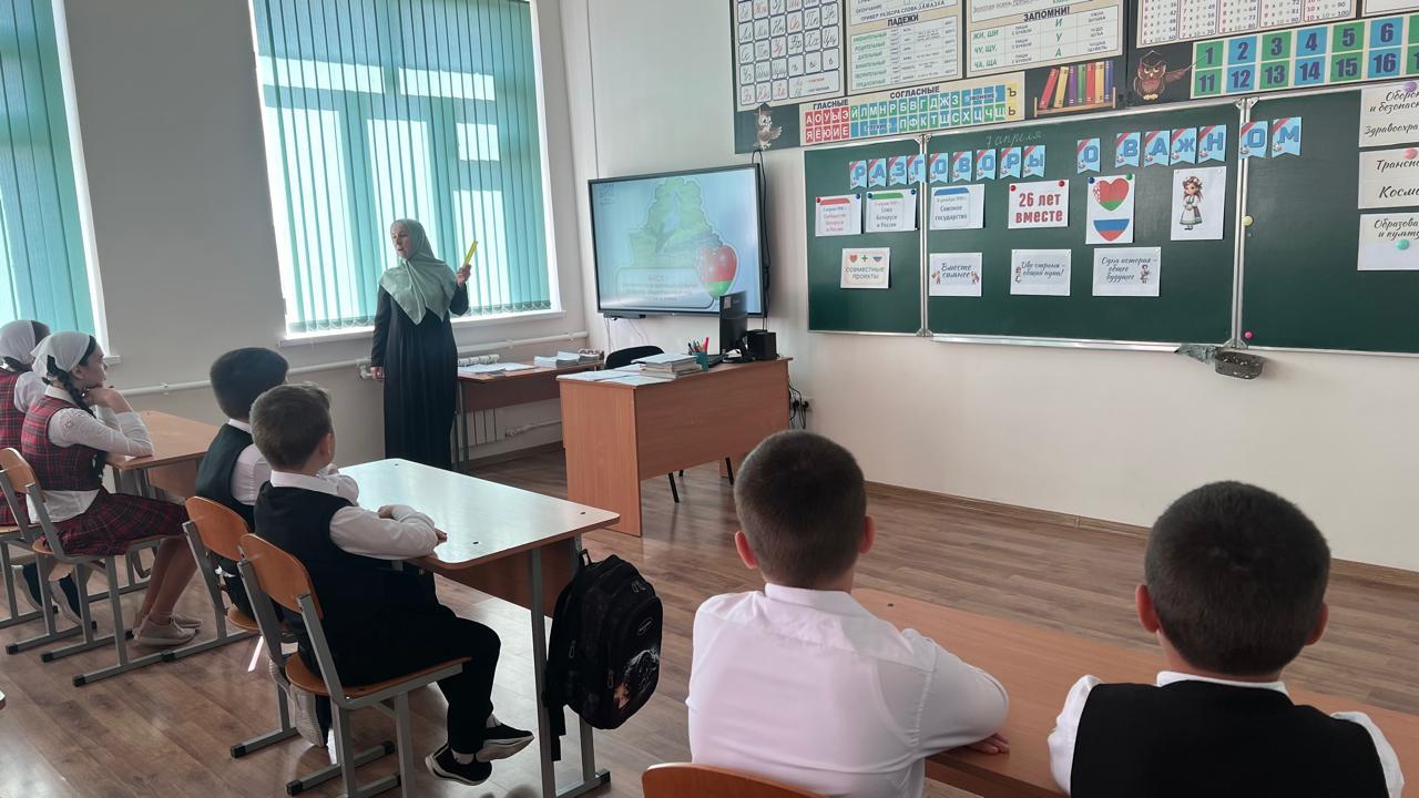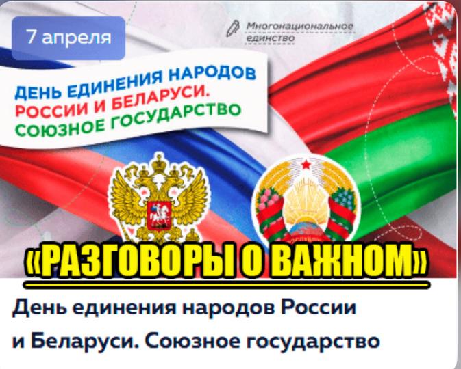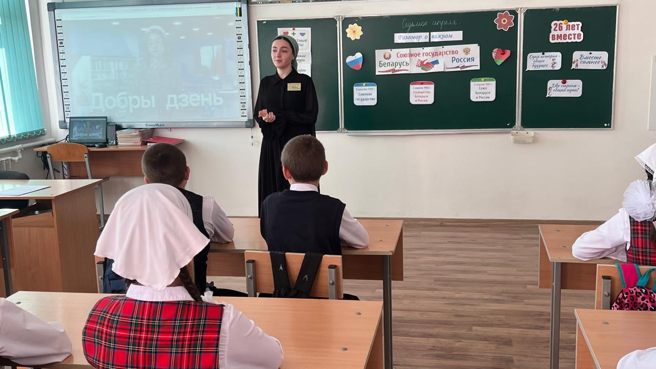 07.04.20257 апреля 2025г. в МБОУ «Калиновская НОШ» для учащихся 1-4 классов, провели занятия Разговоры о важном на тему: День единения народов России и Беларуси.Цели занятия: формирование у обучающихся понимания значимости Союзного государства России и Беларуси, осмысление перспектив интеграции и ее значения для будущего; формирование представлений о принципах партнерских отношений между странами; воспитание уважения к братскому белорусскому народу, формирование интереса к его истории и культуре. Пусть крепнет дружба между Россией и Беларусью! Пусть процветает наше союзное государство!