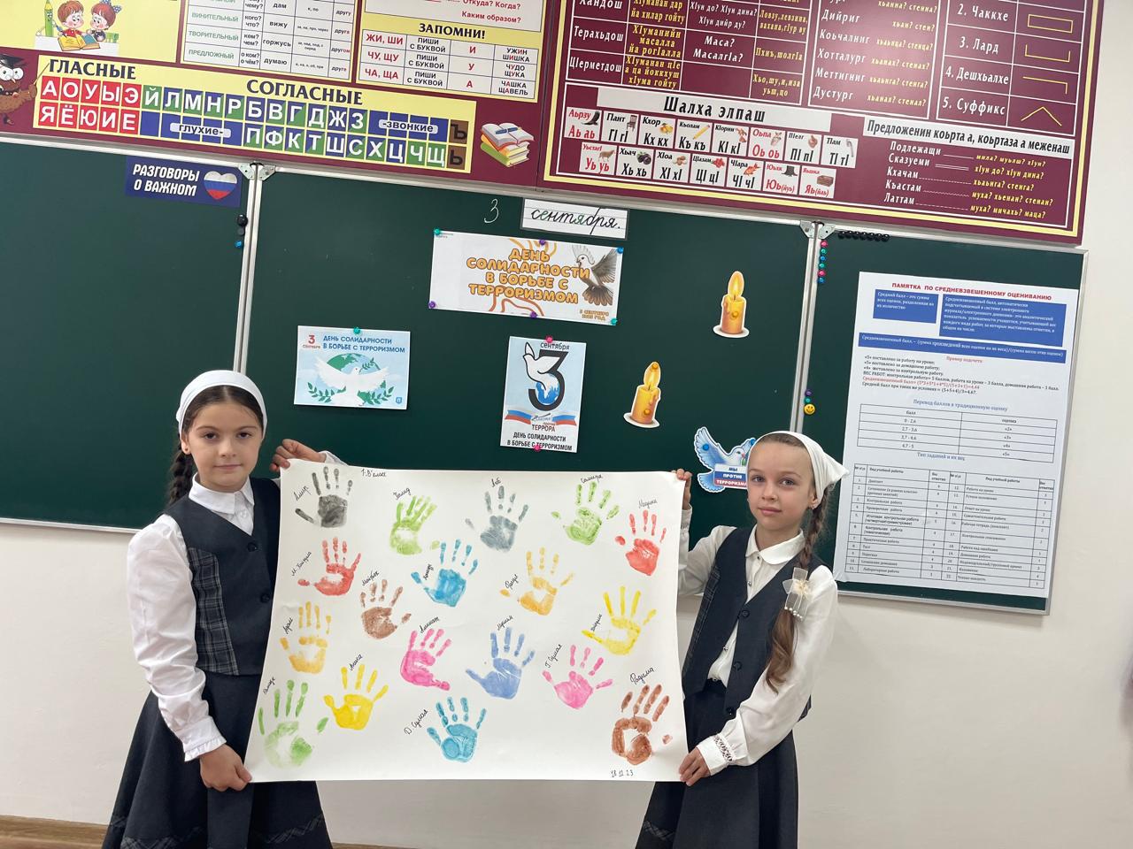 03.09.20253 сентября 2025г. в МБОУ « Калиновская НОШ» с учащимися 1-4 классов провели классные часы, посвященные Дню солидарности в борьбе с терроризмом. Цель мероприятий – развитие понятия о терроризме, способах его противостояния и основных правилах поведения в условиях угрозы терактов. Особое внимание было уделено страшной трагедии в г. Беслан и важности проявления солидарности в борьбе против угрозы терроризма.