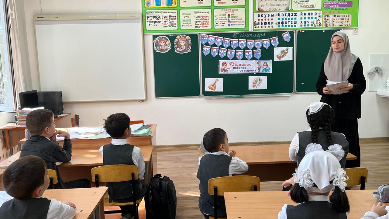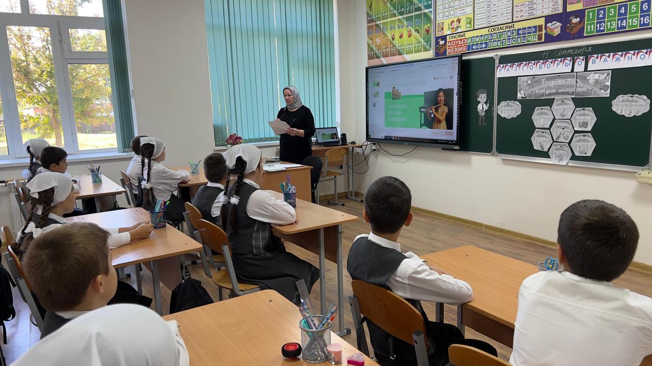 15.09.2025В понедельник, 15 сентября 2025г, в МБОУ « Калиновская НОШ» с учащимися 1-4 классов провели очередной урок из цикла «Разговоры о важном» . Тема нового занятия — «Творчество, которое объединяет». Его посвятят теме творчества и развитию творческих способностей, в том числе музыкальных.С учениками обсудили, что может создать человек с помощью слов, музыки, красок и других изобразительных средств, кого можно назвать творческим человеком и какой вид творчества им ближе всего. В ходе урока они посмотрят фрагмент мультипликационного фильма «Дореми» и выполнят интерактивное занятие «Времена года», посвященное уникальному союзу музыки и живописи. #говоримоважномЧР