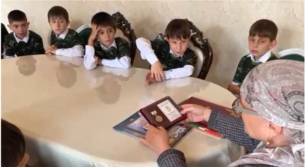 29.09.2025Сегодня, 29 сентября 2025 г члены клуба « Патриот» МБОУ « Калиновская НОШ»навестили Заслуженного учителя Чеченской Республики, которая всю жизнь посвятила преподавательской деятельности в Калиновской начальной школе, удивительный и разносторонний человек, Педагог с большой буквы, милая и обаятельная женщина, заботливая мать, бабушка — Турпалханова Шайман Шамсуевна . Особенно счастлив тот, кому встретился учитель, умеющий принести в класс увлеченность, любовь и, конечно же, знания, освещенные этой любовью. Шайман Шамсуевна радушно встретила ребят, поделилась своими воспоминаниями и показала фото из семейного архива.Искренние слова уважения, восхищения, любви только о Вас и для Вас, уважаемая Шайман Шамсуевна.