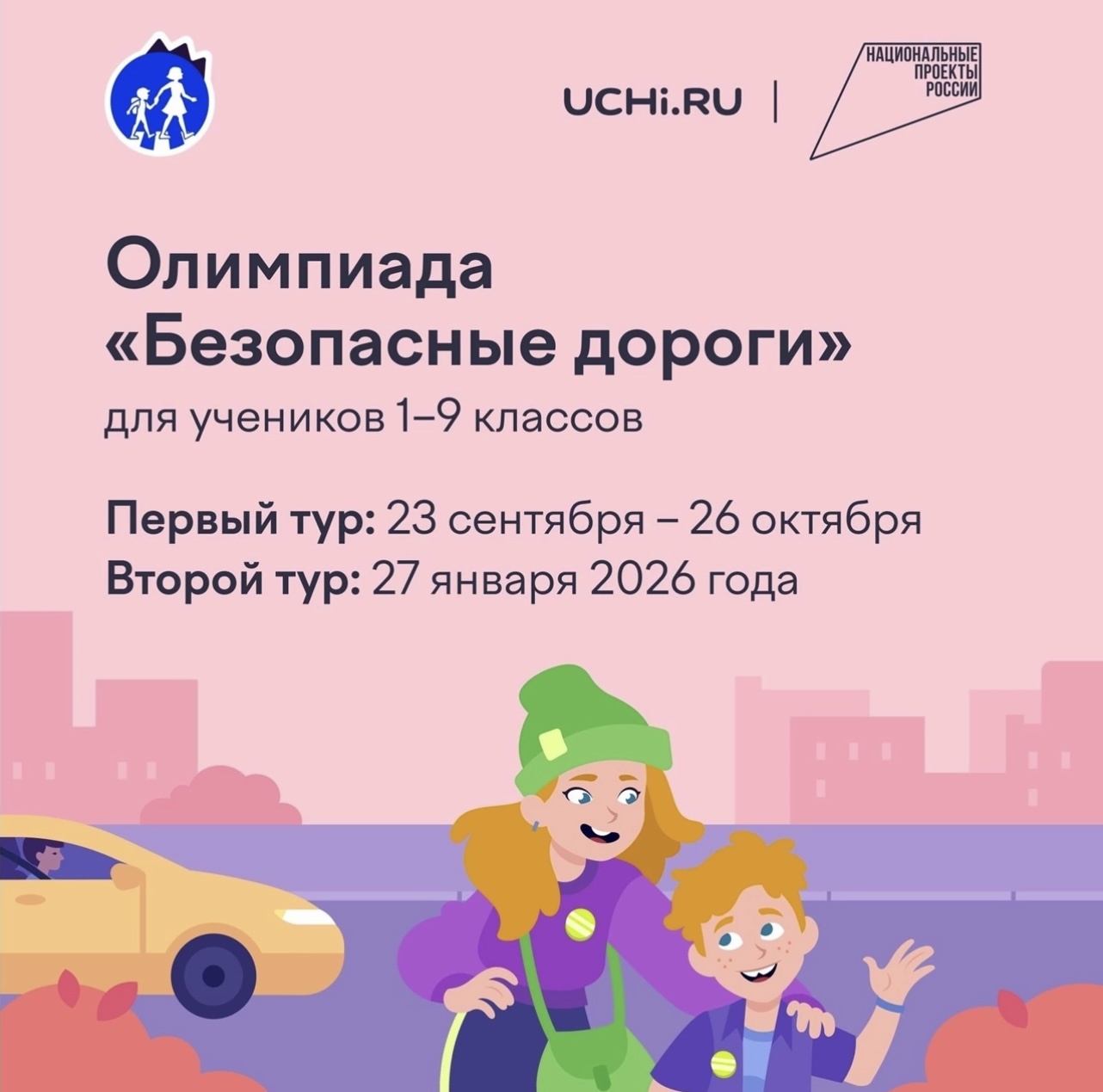 14.10.2025На Учи.ру 23 сентября — 26 октября для дошкольников и учеников 1–4 классов будет проводиться бесплатная всероссийская олимпиада «Безопасные дороги». Организаторами являются Минтранс России, ГУОБДД МВД России, Минпросвещения России, АНО «Национальные приоритеты», Учи.ру при поддержке национального проекта «Инфраструктура для жизни». Олимпиада входит в проект приказа перечня олимпиад Минпросвещения на 2025/26 учебный год. Соревнование направлено на: