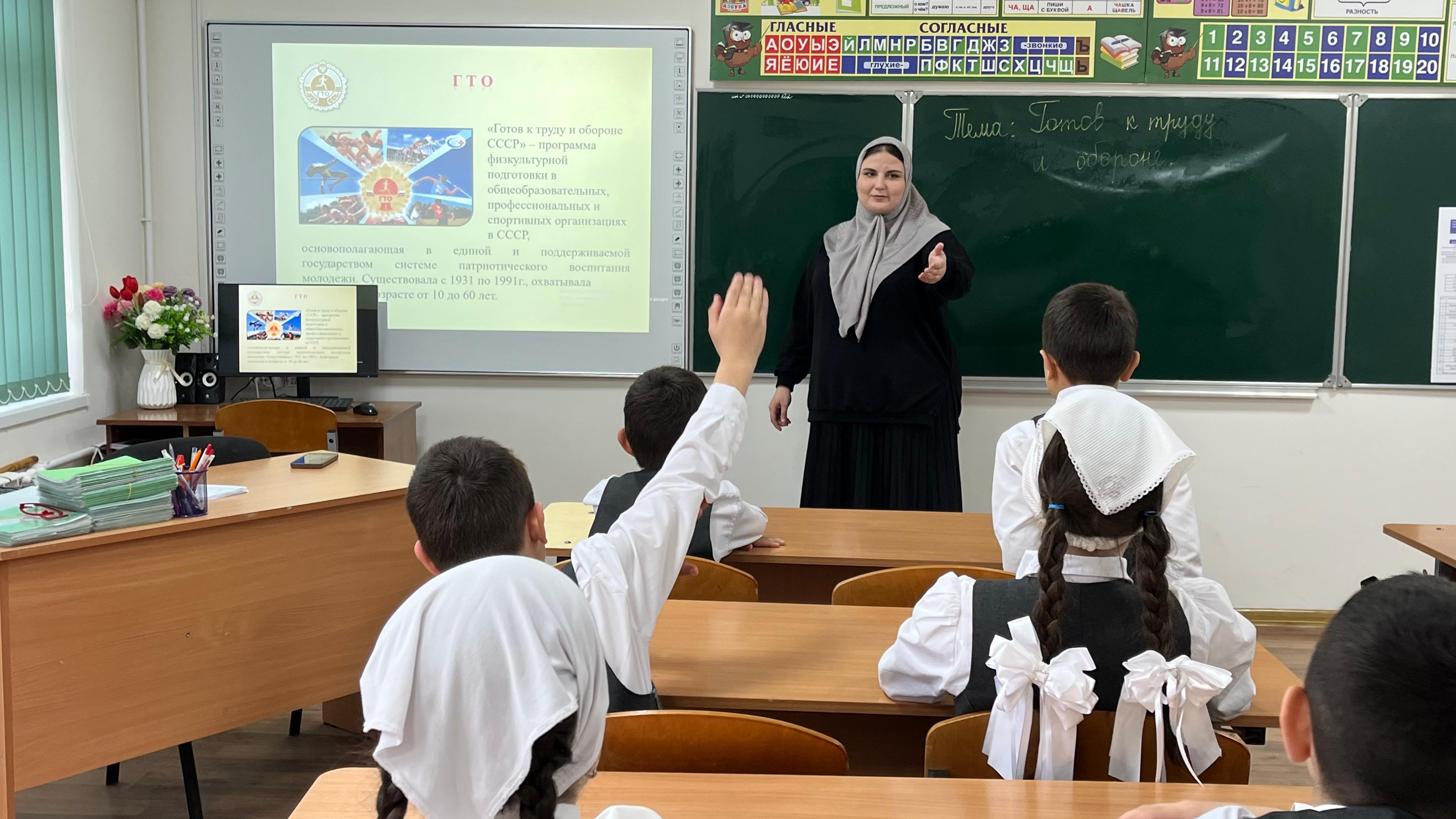 14.11.202514.11.2025г. учащиеся 2-3 классов МБОУ «Калиновская НОШ» приняли участие в Акции "Урок ГТО". В рамках акции учитель физической культуры Турпалханова Р.Р. провела теоретические занятия ,где ребятам рассказали о целях комплекса ГТО и нормативах, которые необходимо выполнить для получения знаков отличия. Также учителем физической культуры Турпалхановой Р. Р. были проведены практические занятия, где ребята познакомились с техникой выполнения упражнений. В конце урока состоялось торжественное вручение знаков отличия различного достоинства ученикам.