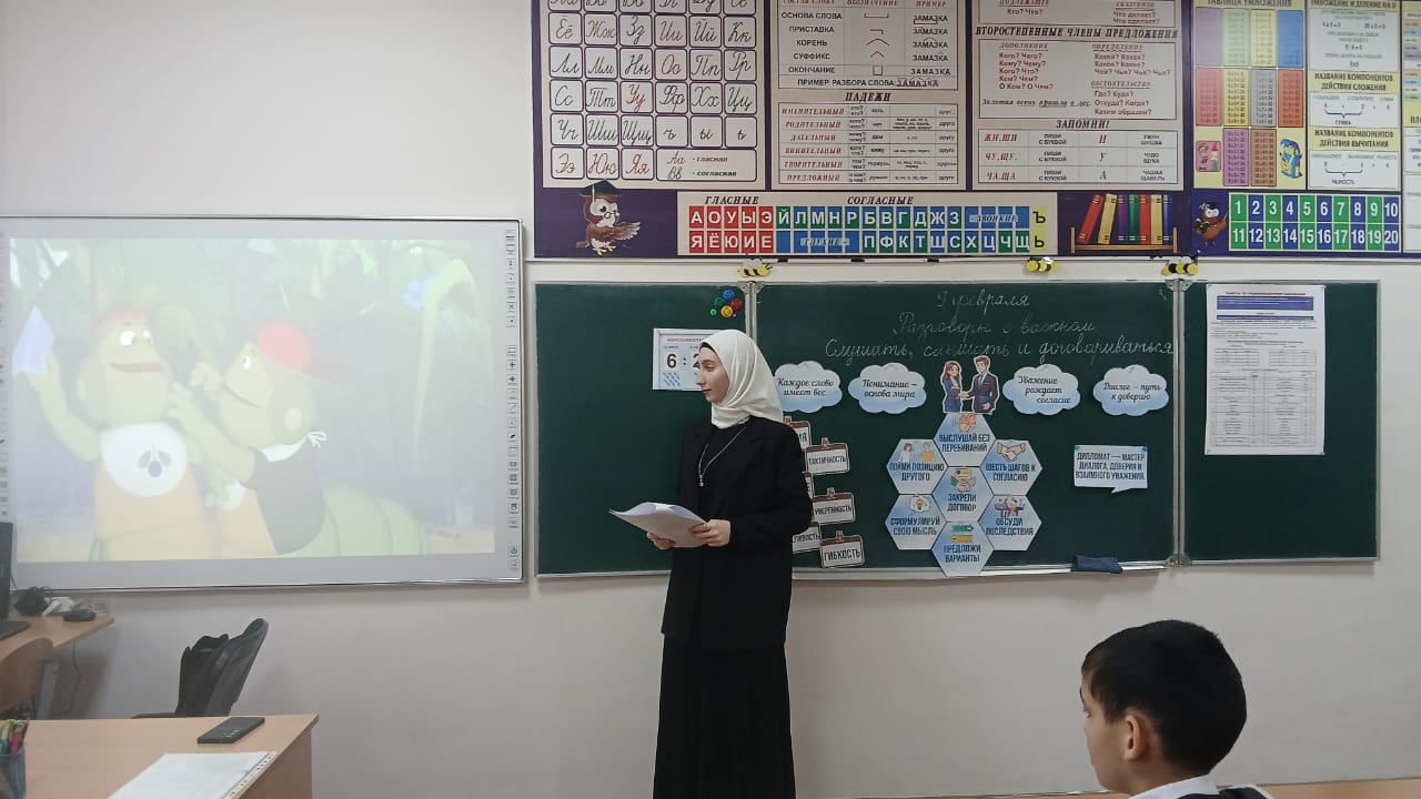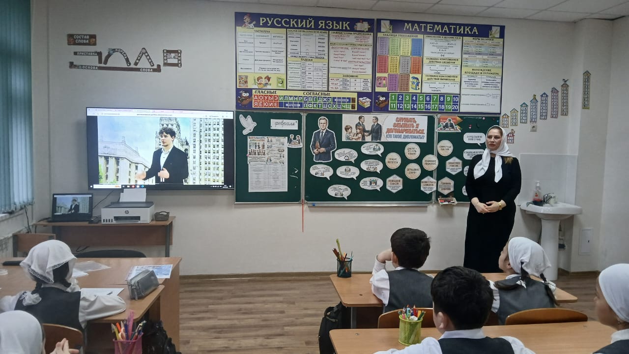 09.02.2026✨ 09.02.2026г. в МБОУ «Калиновская НОШ» прошла линейка с церемонией поднятия государственного флага Российской Федерации ,и Чеченской Республики.Сегодня состоялась важная встреча в рамках образовательного проекта «Разговоры о важном».Тема сегодняшнего урока -«Кто такие дипломаты ?слушать ,слышать и договариваться »Цель урока-Сформировать у учащихся первичное представление о профессии дипломата, его основных задачах и роли.· Познакомить с понятиями «дипломатия», «посол», «международные отношения» на доступном для детей уровне.· Объяснить, что дипломат — это представитель и защитник интересов своей страны за рубежом.#разговорыоважном